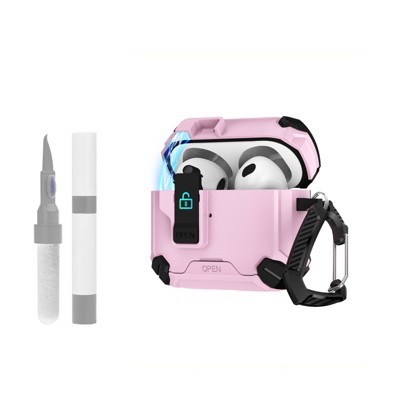 - 【Security Lock Design】The case is composed of upper and lower shells, adopts a split structure, and has a safety lock function on the front. Press the front locking button to automatically open the top cover. The safety lock will lock the case when closed. Don't worry about the top cover automatically opening the earphones and dropping and losing your Airpods Pro when you're out.