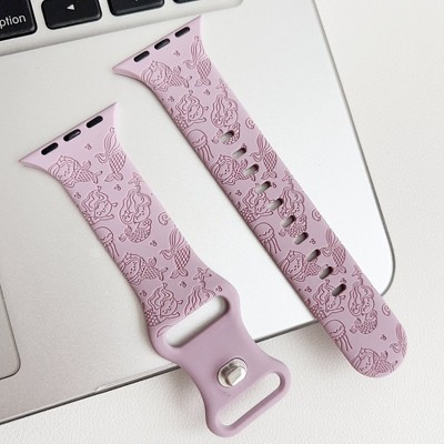 HTUTWOO Engraved Butterfly Apple Watch Band, Soft Silicone Strap 38/40/41mm, for iWatch Series 10 9 8 7 6 5 4 3 2 1 SE Ultra - Purple