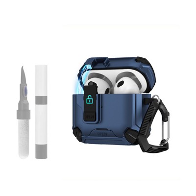 HTUTWOO for Airpods 4 Leather Case, All-Round Headphone Protective Cover, With Hidden Bracket, Magnetic Lock, Cleaning Kit for Man Women, Light Blue