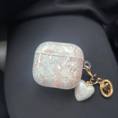 HTUTWOO for AirPod 4 Cute Case, Bling Marble Shell Headphone Cover with Heart-Shaped Keychain and Cleaning Kit for Women
