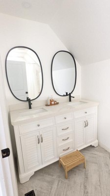 This mirror is so so elegant! Love the frame! Instant upgrade to our bathroom!
