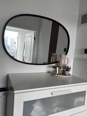 - LARGE OVAL MIRROR: The Hub Oval Mirror is a large oval mirror with a contemporary rubber frame that looks great in any room
