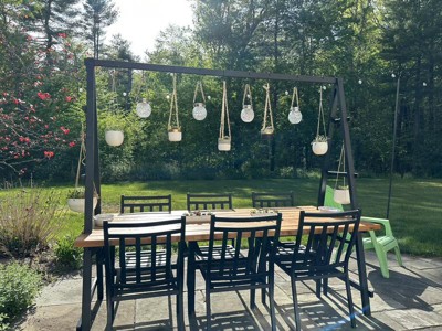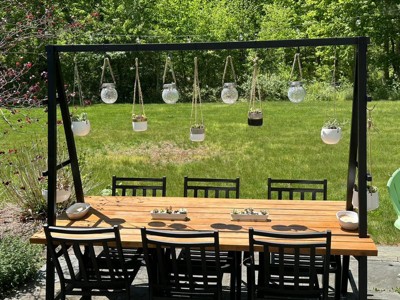 PLANT HANGER: This table provides a unique structure that allows you to hang your favorite potted plants over your dining set. Spanning the width of the table, this metal bar allows you to decorate your space with a fresh breath of nature.