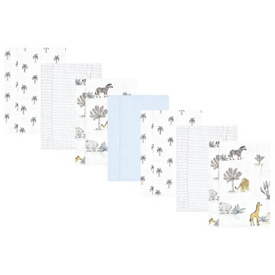 Hudson Baby Boys Cotton Flannel Burp Cloths 7-Pack, Pastel Dino, One Size