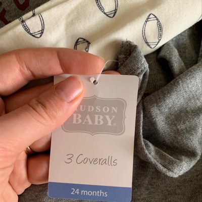 Product Name: Hudson Baby Infant Boy Cotton Coveralls 3pk, Football, 0-3 Months