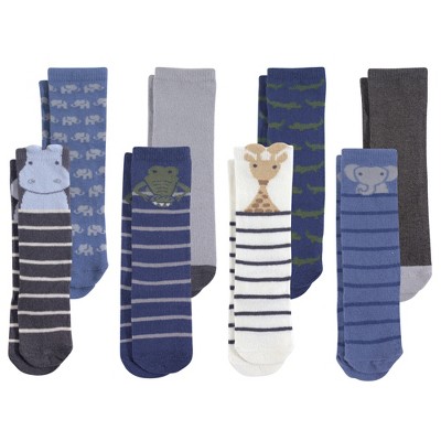 Hudson Baby knee high socks are made to feel comfortable and cozy on baby's feet and functional to stay on baby's week. Our socks rise just below the knee to help the socks stay on and keep baby's lower legs nice and warm. Our adorable designs and animals face make our socks fun to wear. Made with a cotton rich blend, our socks are soft and stretchable. Hudson Baby Infant Boy Cotton Rich Knee-High Socks, Forest Boy is a great baby essentials set for your little one.