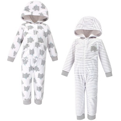 • Set includes coordinating hooded jumpsuits, union suits, coveralls