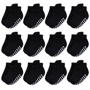 Hudson Baby Infant Boy Non-Skid No-Show Socks, Black - 1 of 3