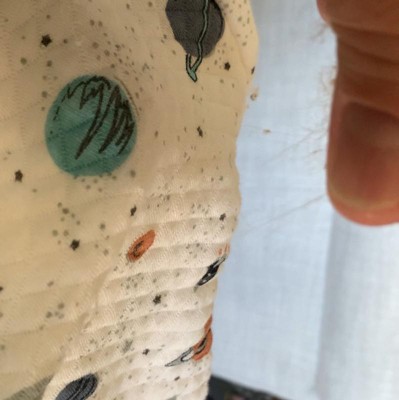 I bought these for my 11 month old grandson. I loved the design and prints but after 2-3 washings, and rocking my grandson to sleep I noticed long hairs on the sack. I kept pulling off more and more and noticed they were stretchy. I was baffled then realized it was the stitching of the polyester sack. I had removed a huge amount of long stitching and it created large clusters of threads which is a choking hazard as well as the possibility of getting wrapped around tiny hands and fingers cutting off circulation! I immediately took it off him and cleaned up all the loose threads. Returning theses sleep sacks and contacting the company requesting they recall these sacks! Very dangerous