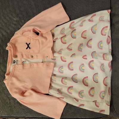 Hudson Baby Infant Girl Cotton Dress and Cardigan Set, Modern Rainbow, 0-3 Months