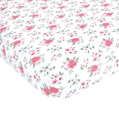 Hudson Baby Infant Girl Cotton Fitted Crib Sheet, Vintage Blossom, One Size