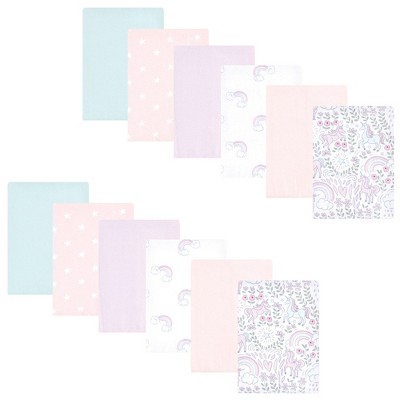 Hudson Baby Infant Girl Cotton Flannel Burp Cloths, Dreamy Unicorn, One Size