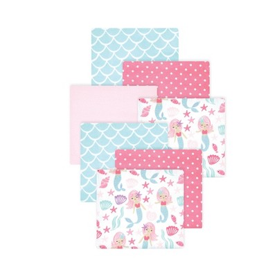Hudson Baby Infant Girl Cotton Flannel Receiving Blankets Bundle, Mermaid, One Size
