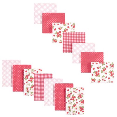 Hudson Baby Infant Girl Cotton Flannel Receiving Blankets Bundle, Strawberries, One Size