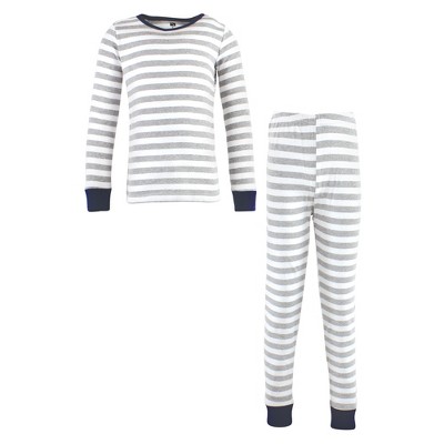 Hudson Baby Infant Girl Cotton Pajama Set, Gray Stripe Pink
