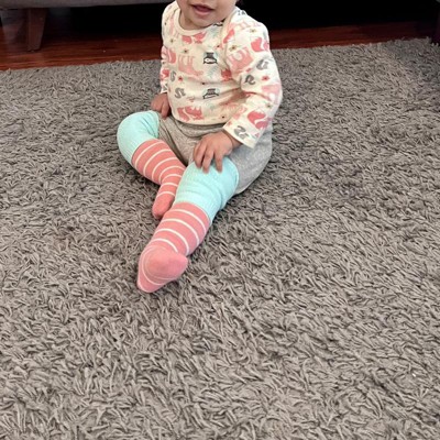 As far as baby socks go, these are good overall. They don’t fall apart and are long enough and have stretch. They match the Hudson onesies well. The only thing I don’t like is after so many washes they look pilled and older. If your little one’s legs are very chubby they can be tighter at top. These will last through some growth cycles which I like.