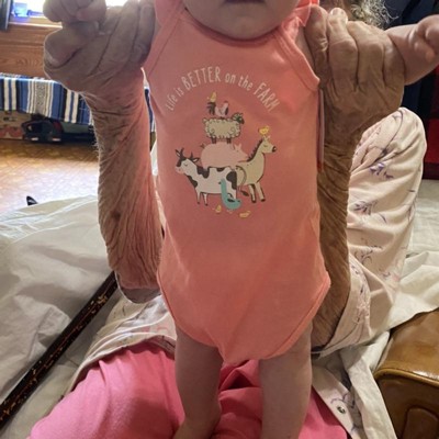 Product Name: Hudson Baby Infant Girl Cotton Sleeveless Bodysuits, Girl Farm Animals, 0-3 Months