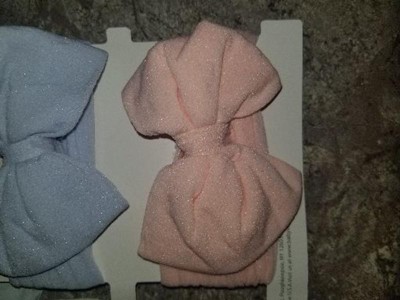 These bows look very cute and feel super soft. However, they are very poorly made. The glue that attatches the knot to the band is very bulky and noticeable. I can feel blobs of glue around the knot. Some are sewed in tighter on one side which makes them look uneven.