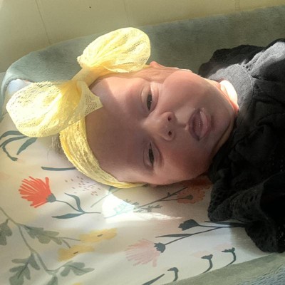 My daughter gets so many compliments on these bow. They aren’t binding and they stay on pretty well. No bow is going to stay on an active little baby all day, but she doesn’t mind these at all. Super soft stretchy lace. Pretty colors. I use these the most for her and I have a whole drawer of bows.