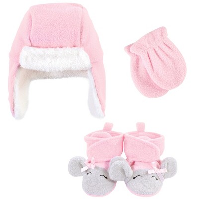 Product Name: Hudson Baby Infant Girl Trapper Hat, Mitten and Bootie Set, Pink Bear, 6-12 Months