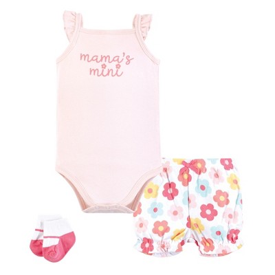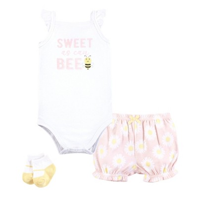Hudson Baby Infant Girls Bodysuit, Short and Sock, Soft Pink Basic Tulip