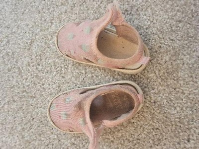 These shoes are so cute and seemingly comfortable. They fit my toddler great and she could walk so well with them on, but they began to fall apart shortly after she started wearing them. First the liner over the sole fell off leaving just the rubber insole under her foot. And then the seams started ripping apart by her toe, and now the velcro is peeling off. I would never purchase these shoes again. They didn't even last us a month.
