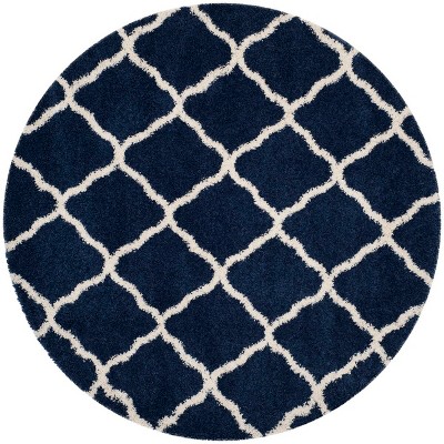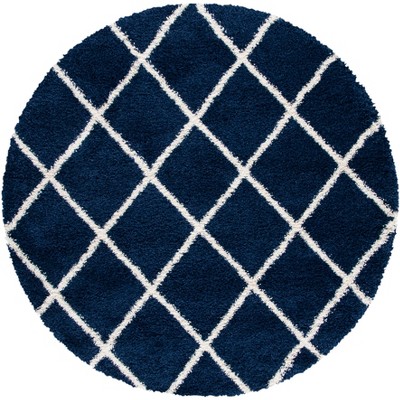 Hudson Shag SGH281 Power Loomed Indoor Area Rug - Navy/Ivory - 7' Round - Safavieh