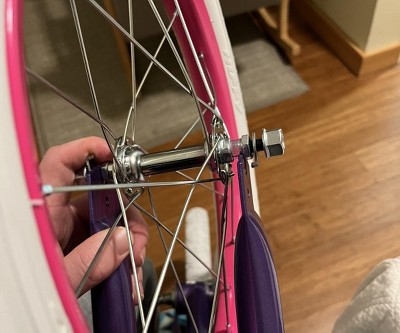 This was my daughter's first big girl bike without training wheels. During her first ride, the pedals stopped turning. With brute strength, I forced the pedals to turn. I adjusted and attached the chain and oiled it up and hoped for the best. The 4th and final ride, the pedals became stiff and the chain kept popping off. The pedal axle was wobbly and became loose. We had to walk back half a mile in the heat cause I couldn't keep the chain on the sprocket. Never will buy Huffy again cause now my older daughter's mountain bike is falling apart.