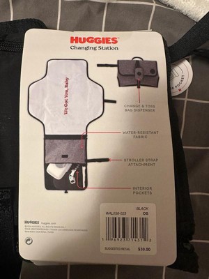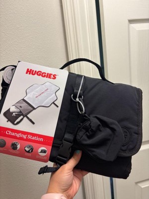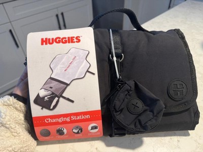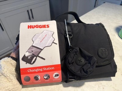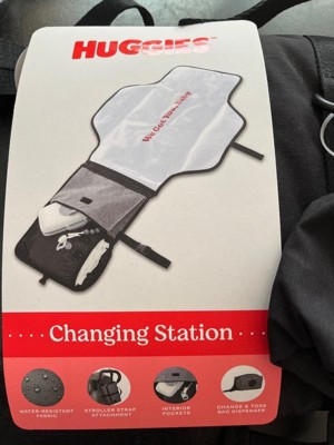 Change your baby anytime, anywhere with our Huggies Changing Station. Made with durable, easy-to-wipe material in a convenient tri-fold construction, it’s both fashion and function, mama! Use the interior organizational pockets to stash Huggies diapers and wipes, and the change-and-toss dispenser for quick and easy clean up! Wherever you go, we got you, baby!