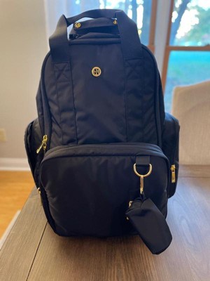 [This review was collected as part of a promotion.] With this bag they really did think of all the details. There are tons of pockets for specific things and that way everything stays organized. Even with a full bag it’s comfortable to wear. You can transition from the baby to toddler stage, like I was using it. I took it to the gym, and had my iPad in the separate pocket and even fit my large Stanley cup in the spot for bottles. The only thing that bothered me was that when you fill it up it looks quite large and was hard to fit into my locker. Other than that it’s great!