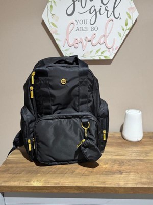 [This review was collected as part of a promotion.] I love this diaper bag! It’s very spacious and has the right amount of pockets and zippers. The diaper/poop bag pouch is brilliant along with the side pocket for wipes that does not require unzipping anything to get to the wipes. I also appreciate that the portable changing mat is larger than most other brands provide. The side pocket that’s insulated for bottles is very generous in size. The front pouch being able to be removed is brilliant! You can easy take it on or off and it doesn’t cause the bag to look incomplete without it. The straps are padded and adjustable making it fit both my husband and me. The zippers easily glide and the material is good quality. I imagine this will last many years.