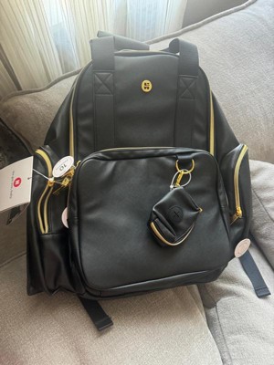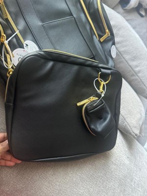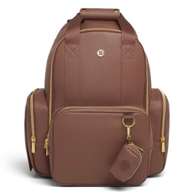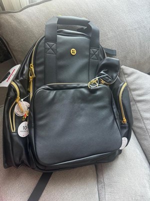 [This review was collected as part of a promotion.] This backpack diaper bag is crafted from high-quality vegan leather, offering durability and a stylish appearance. The spacious interior provides ample room for all your essentials, and the detachable front pocket adds versatility to its design. Additionally, it comes with stroller straps for convenient hands-free carrying. Beyond its function as a diaper bag, this versatile backpack can serve multiple purposes. I highly recommend this product for its quality, functionality, and stylish appeal.