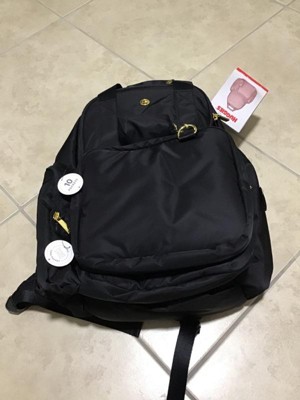 [This review was collected as part of a promotion.] Before using this as a diaper bag, I used it as an airplane carry-on. The backpack is made well and looks great. There's plenty of pockets for all the necessities you could possibly need. The thermal pocket meant for bottles was perfect for medication that I'm required to keep cool. I would definitely recommend this one.
