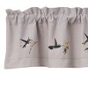 This lined valance curtain has various embroidered hummingbirds intricately stitched against a solid neutral fabric. Features a 1.5 inch header and 2 inch rod pocket to easily display in window setting of a kitchen, dining room, and more! The lined element softens outdoor lighting for a comfortable, cozy ambiance. The natural ruffling of the fabric at the top paired with its chic design will create a stylish look without having to redecorate an entire room.