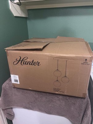 Add a touch of glamour to your dining experience with the Hepburn linear chandelier. Over your dining table or island countertop, this 1920's inspired light fixture with cased white glass orbs will brighten your nights with a lovely glow. There are finishes to suit many tastes. We are sure you will find a perfect fit with this light and other lights from the Hepburn Collection. You can also mix and match throughout your home with other Hunter collections.. Rated for indoor use only. Requires 3 E26 bulbs. Bulbs not included.. MADE FOR INDOORS: For use in indoor spaces like kitchens, bedrooms, living rooms, dining rooms, and entryways.. BULB RECOMMENDATION: Maximum 60 W per light bulb or equivalent LED bulb. Bulbs not included.. CUSTOMIZABLE HANGING OPTIONS: With the minimum required cord, the hanging length is inches. When using all of the included cord, the maximum hanging length is inches.. WARRANTY: One-year limited warranty backed by the trusted experts at Hunter.,