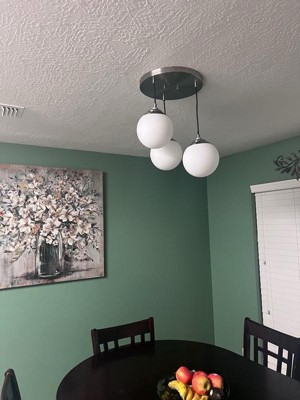[This review was collected as part of a promotion.] This Hepburn 3 light round cluster light is a gorgeous addition to any home. It hangs the perfect amount of space from the ceiling. It is very beautiful.