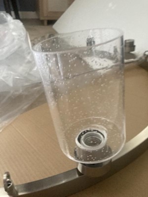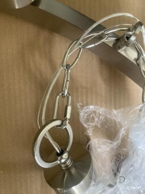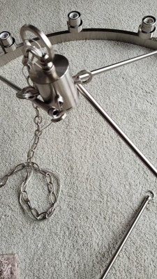 [This review was collected as part of a promotion.] I am happy with this Hunter Hartland 12 Light Chandelier now that it is finally up. We have installed a lot of light fixtures but this one was awkward to handle because of the arms it hangs on. These arms just hook on the fixture without a way to secure them so they fall back off very easily which quickly became frustrating. Other than that it was a standard installation. It is a lightweight fixture which did help make it easier to install. The brushed nickle finish is very pretty. It is a nice large size. I like the bubbled glass of the "shades". It is a very pretty fixture with good quality materials.