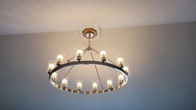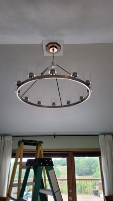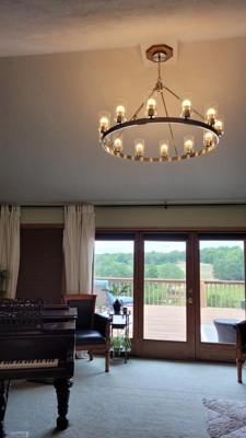 [This review was collected as part of a promotion.] I was so excited for this to come in the mail. Luckily, the day after it came, my husband had a day off from work. I couldn’t wait to have it above my dining room table. It took 3 guys to install it. It’s very large and so beautiful!! I just love it. It came packaged very nicely, nothing was harmed in shipment. It takes 12 E26-base light bulbs. We went from a 4 light bulb fixture to this with 12 light bulbs and what a difference it made!! My husband had no issues with installation. It’s hanging very securely. I highly recommend this!!