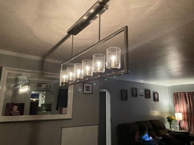 [This review was collected as part of a promotion.] I have been looking to update my light in my dining room and this Kerrison chandelier was the perfect choice! Installing this light took me about an hour, the included directions were very helpful and easy to follow. This 6 light chandelier is absolutely gorgeous! I love the shape and the style of this light, it is very modern and looks amazing in my dining room. This chandelier gives off just the right amount of lighting. The 6 seeded glass shades adds to this lights beauty. I love the brush nickel finish, it matches my home décor perfectly. This chandelier comes with downrods so you can customize how high or low you want to hang the light. Adding this chandelier to my dining room has definitely updated the look of the space. I have received so many compliments on my new fixture! If you are looking for a chandelier that is high quality and modern, then I highly recommend this one!