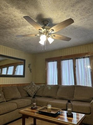 [This review was collected as part of a promotion.] When removing my old fan to install this new one the electrician realized that the old one had an extra hot wire that we didn't need. Needless to say we are having to re-wire the fan/light outlet soon.