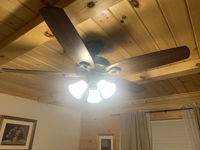 nice, quiet, attractive fan, great bright lights, wires in the box could be a little longer, kept disconnecting while placing caps on,