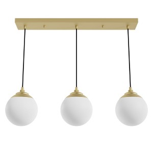 Add a touch of glamour to your dining experience with the Hepburn linear chandelier. Over your dining table or island countertop, this 1920's inspired light fixture with cased white glass orbs will brighten your nights with a lovely glow. There are finishes to suit many tastes. We are sure you will find a perfect fit with this light and other lights from the Hepburn Collection. You can also mix and match throughout your home with other Hunter collections.. Rated for indoor use only. Requires 3 E26 bulbs. Bulbs not included.. MADE FOR INDOORS: For use in indoor spaces like kitchens, bedrooms, living rooms, dining rooms, and entryways.. BULB RECOMMENDATION: Maximum 60 W per light bulb or equivalent LED bulb. Bulbs not included.. CUSTOMIZABLE HANGING OPTIONS: With the minimum required cord, the hanging length is inches. When using all of the included cord, the maximum hanging length is inches.. WARRANTY: One-year limited warranty backed by the trusted experts at Hunter.,