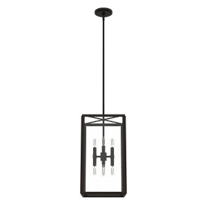 The Felippe lantern-inspired pendant light is one of our most versatile styles. It blends minimalist modern and casual design elements for a timeless look. The clear, seeded glass and strong lines give any style space - from urban lofts to modern farmhouse spaces - a hit of nostalgia, especially when you add the warm glow of a filament style bulb. Rated for indoor use only Requires 8 E12 bulbs. Bulbs not included. MADE FOR INDOORS: For use in indoor spaces like kitchens, bedrooms, living rooms, dining rooms, and entryways. BULB RECOMMENDATION: Maximum 60 W per light bulb or equivalent LED bulb. Bulbs not included. PICTURED HERE: Match our image using E12 light bulbs. CUSTOMIZABLE HANGING OPTIONS: Includes one 6 inch downrod and four 12 inch downrods for height adjustments between 29.25 inches and 77.25 inches. SLOPED CEILING COMPATIBLE: Mounting system compatible with sloped or angled ceiling. WARRANTY: One-year limited warranty backed by the trusted experts at Hunter. Assembly Requir