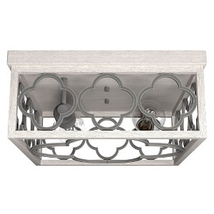 Material: Metal, Finish Color: Distressed White, Width: 13.5", Height: 6", Length: 13.5", Hanging Method: Flush, Lamping Type: Incandescent, Number Of Bulbs: 2, Wattage: 60 Watts, Dimmable: No, Moisture Rating: Dry Rated