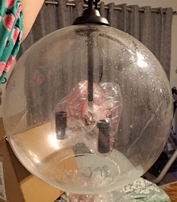 [This review was collected as part of a promotion.] Our family fell head over heels with this pendant lamp! It is absolutely gorgeous!! The 3 lights literally look like they're floating inside of the glads orb. It's stylish and elegant. This light really tickles my fancy because it can be hung anywhere between 25.5 to 73.5 inches, which means endless possibilities! I received this product for free in exchange for my review.