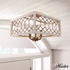[This review was collected as part of a promotion.] I absolutely love this light flush, it's beautiful. Our kitchen and home is more of the farm/rustic look and it fits in really good, I was worried about how the light would reflect past the bars but it doesn't effect it at all, gives light all around the kitchen , we put it over our kitchen table. It was really easy to install for me as I've got experience in installation of lighting. Definitely a great product and made well!