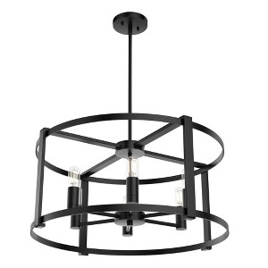 [This review was collected as part of a promotion.] This Astwood chandelier is a great additional to my dining area. This chandelier is a large piece (26 in around) but is does make a statement in the room. The matte black finish compliments the decor. It takes six light bulbs that are not included though. This light fixture is easy to install and is adjustable if you have taller ceilings. This light fixture is lightweight too.
