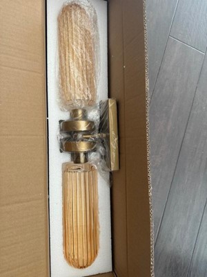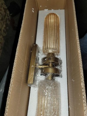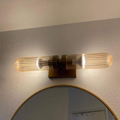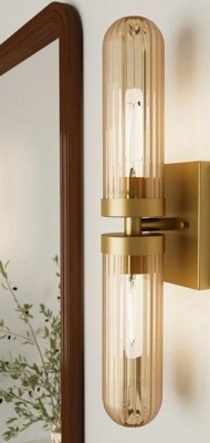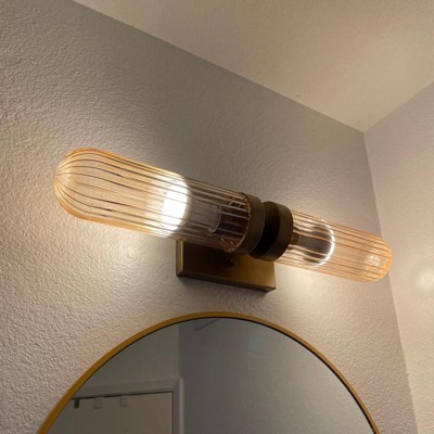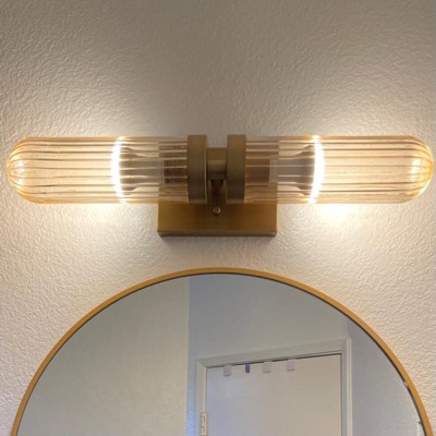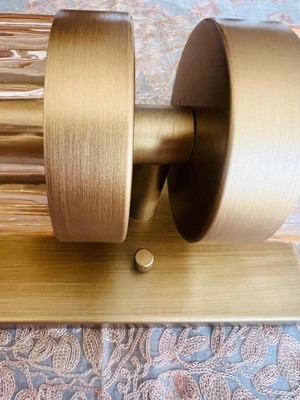 [This review was collected as part of a promotion.] This is a beautiful art deco inspired 2 light bath vanity sconce. It adds elegance, grace and a luxurious feel to any bathroom. Installation was easy, the glass feels durable and the gold metal and hardware does not rust.