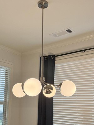 Beautiful chandelier and exactly what we were looking for in our dining area. Lovely mod-mod vibe.