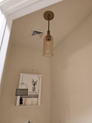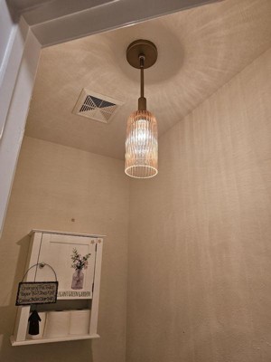 [This review was collected as part of a promotion.] I have it in my bathroom and it completely transformed the space. It looks very modern and elegant. When the light is on, the amber glass casts a warm, inviting glow that’s much softer and richer than standard clear glass. The pendant comes with customizable hanging rod extensions, making it easy to adjust to your ceiling. Installation was easy, it took my husband only less than 30 minutes!